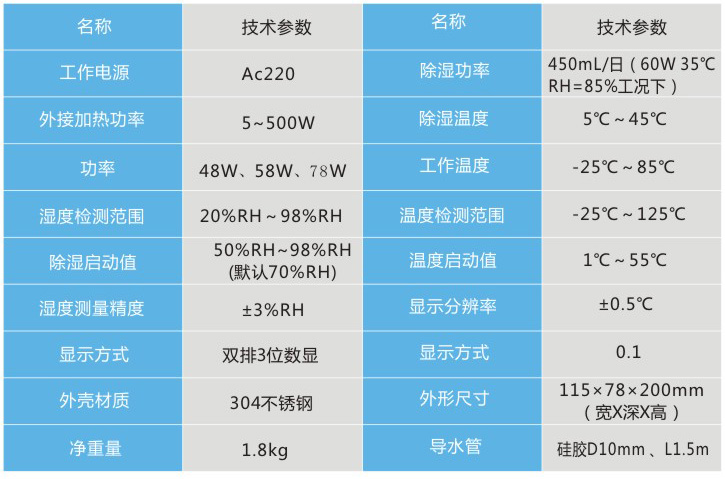?濕度、溫度傳感器24小時實時采樣,超出設定啟動值自動除濕;